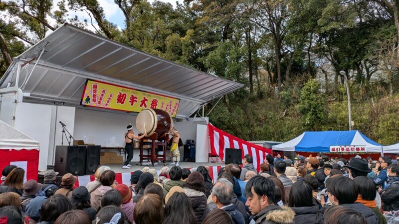 参拝者が「福がき(熊手)」や「福札」を授かった際に、その人の目の前で太鼓を激しく打ち鳴らし、「福男」が「おめでとうございます!」と祈願してくれます。