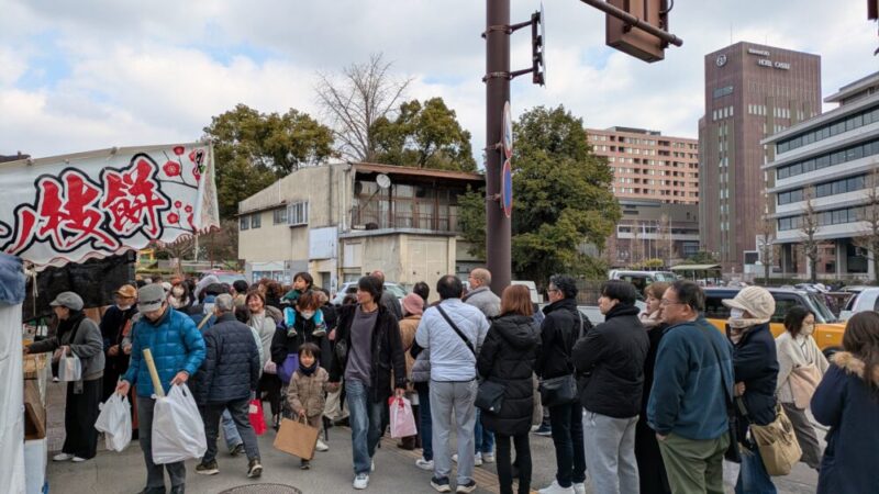 活気はありながらみんなマナーを守りながら安全に福餅を受け取っています。
