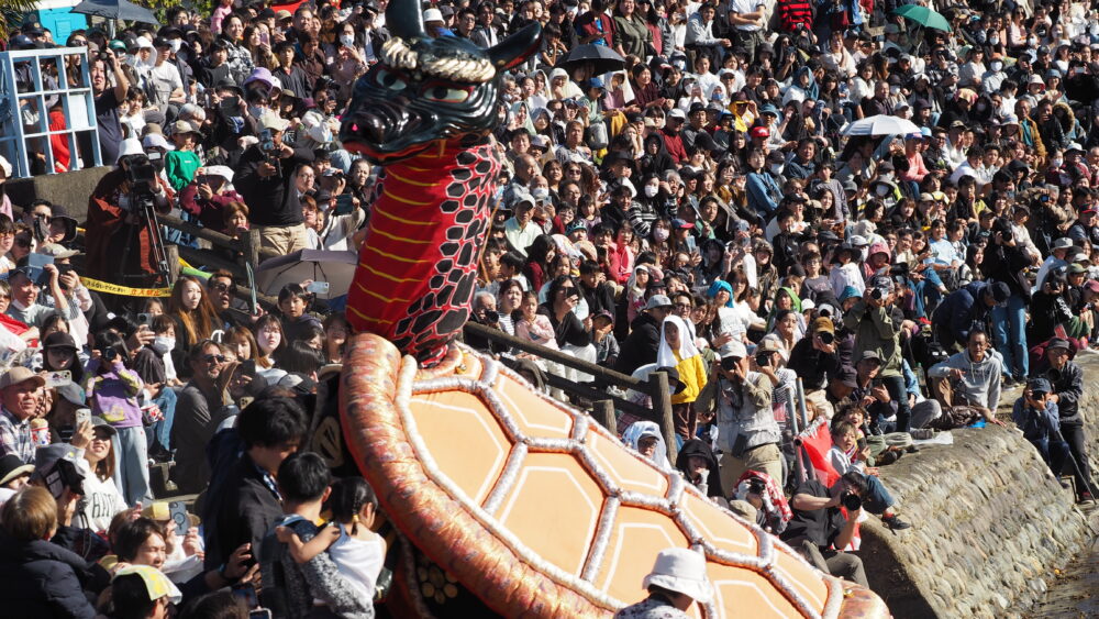 | 【概要】 最大の特徴は、高さ10メートル、直径5.6メートル、重さ480キログラムにもなる巨大な提灯。6組12張りの大提灯が立ち並び、それぞれに源平合戦や伝説の物語が描かれている。巨大ろうそくでこれらの提灯に火が灯されると、夜空に幻想的な光景が浮かび上がる。 海魔退散を祈願したのが始まったとされ、450年以上続く県の有形民俗文化財。古くから伝わる伝統と壮大な提灯の美しさを堪能できる、見どころ満載の祭り。 | |