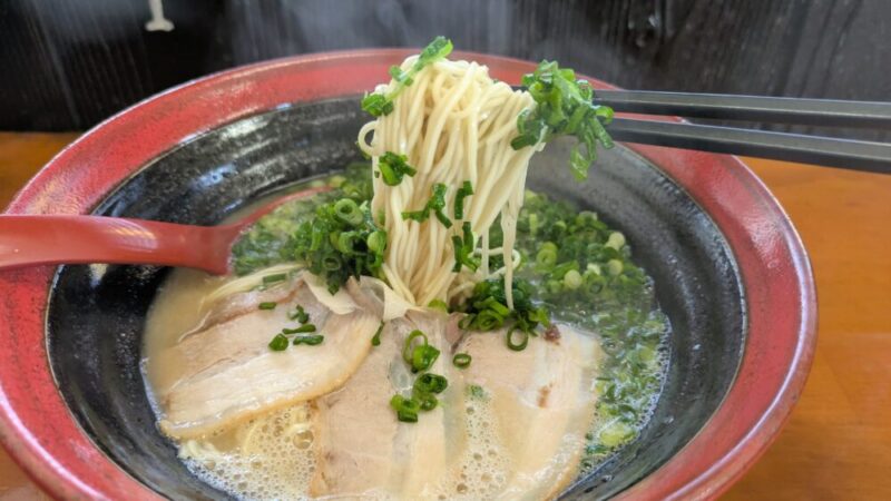 細めのストレート麺に濃厚、でもさっぱり頂けるトンコツスープ。