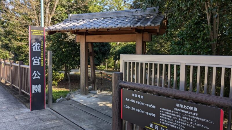 こちら雀宮公園は歌舞伎の名優・七代目松本幸四郎の別邸「武州寄居町雀亭」の跡地を整備した公園です。木漏れ日が気持ちよいなぁ。